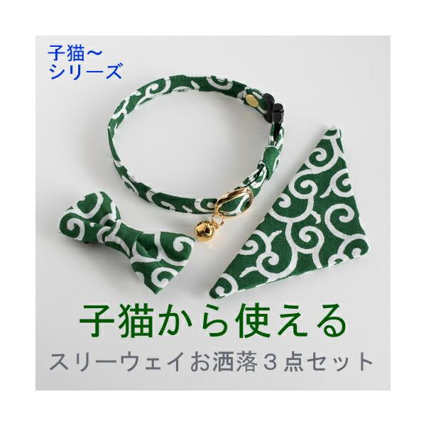 ハンドメイドの【猫 首輪 唐草】リボン バンダナ 安全ベルトのスリー