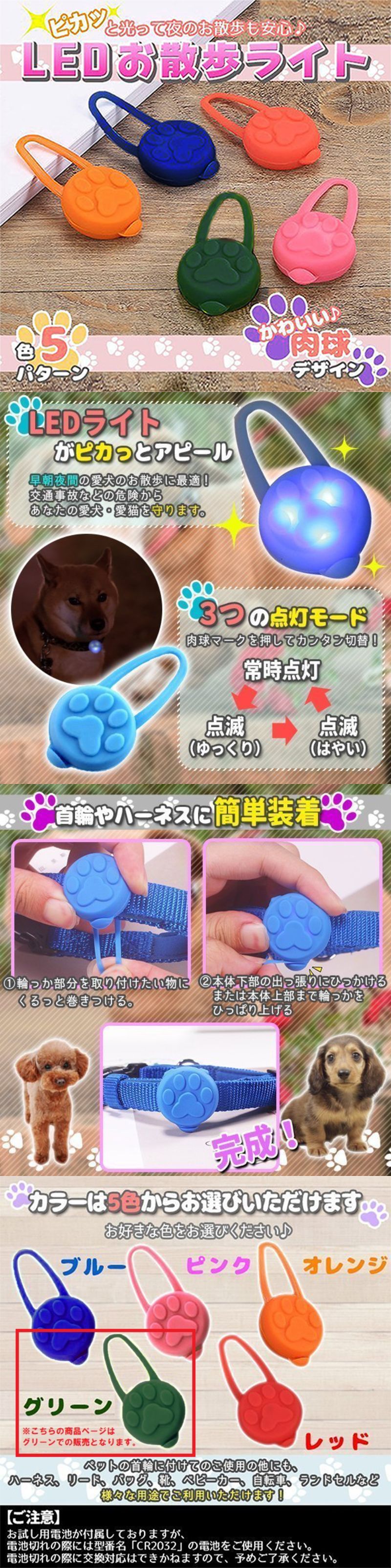 ☆LED お散歩ライト ブルー 肉球 シリコン 犬 猫 ペット 電池式 光る